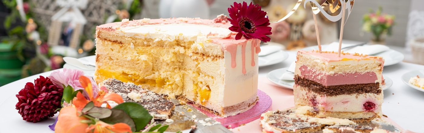 Gegen 15.00 Uhr trafen dann das Brautpaar & die Gäste pünktlich zum Anschnitt der Hochzeitstorte, im festlich geschmückten Garten ein. Nach der Reportagefotografie des Tortenanschnitts endete mein Auftrag, und ich verließ die stimmungsvolle Feier.