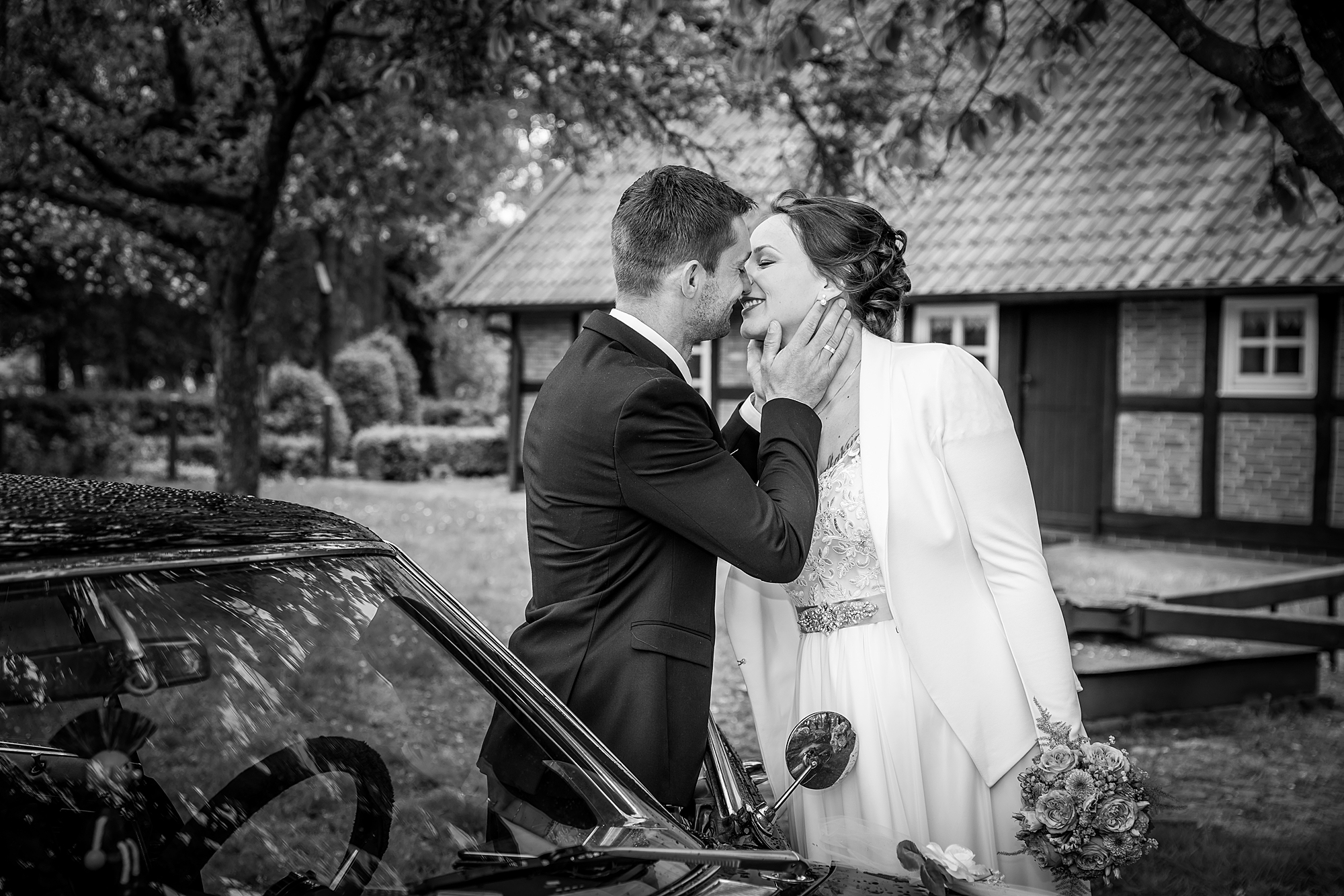 Mit einer ordentlichen Verspätung starteten wir zur Traulocation, dem Heimathaus Oyten, wo die Hochzeitsgäste schon gespannt warteten, jedoch vom Bräutigam noch nichts zu sehen war. Ja, und so durfte Anja noch eine Ehrenrunde in ihrem Cadillac drehen.